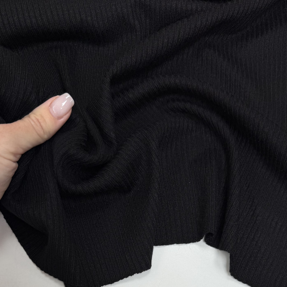 Трикотажне полотно у вузький поздовжній рубчик. Дуже ніжне та м‘яке, пластичне, не прозоре. Має хороший стрейч.