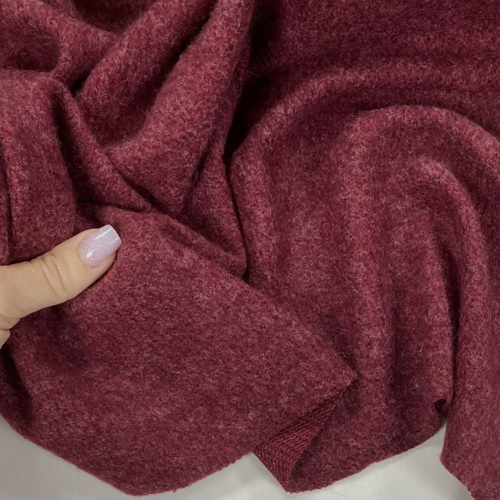 Темний, насичений вишневий колір, що є зараз дуже актуальним. Мʼякий ангоровий трикотаж. Трошки обʼємний, але при цьому теплий і невагомий. Є хороший стрейч. Ідеальна на кофти, гольфи, светрики, костюми, сукні.