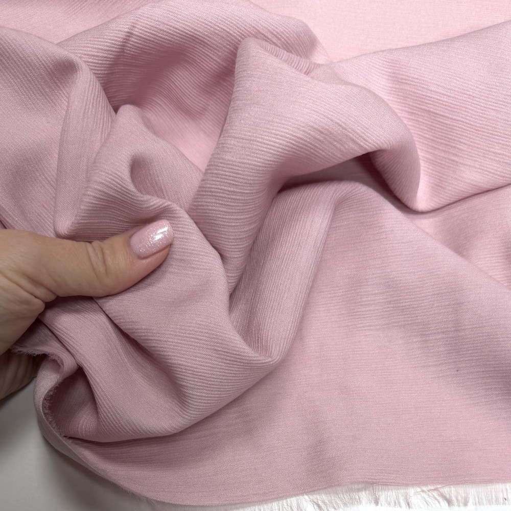 Ніжний, світлий колір Чайної троянди. Фактура у тканини в дрібну легку жаточку по ширині.