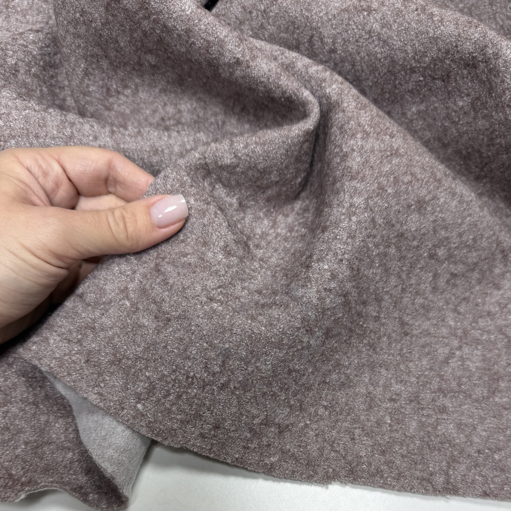 Світла кава з молоком. Красивий, пастельний відтінок. З вивороту тканина продубльована шаром білого дублеріну.