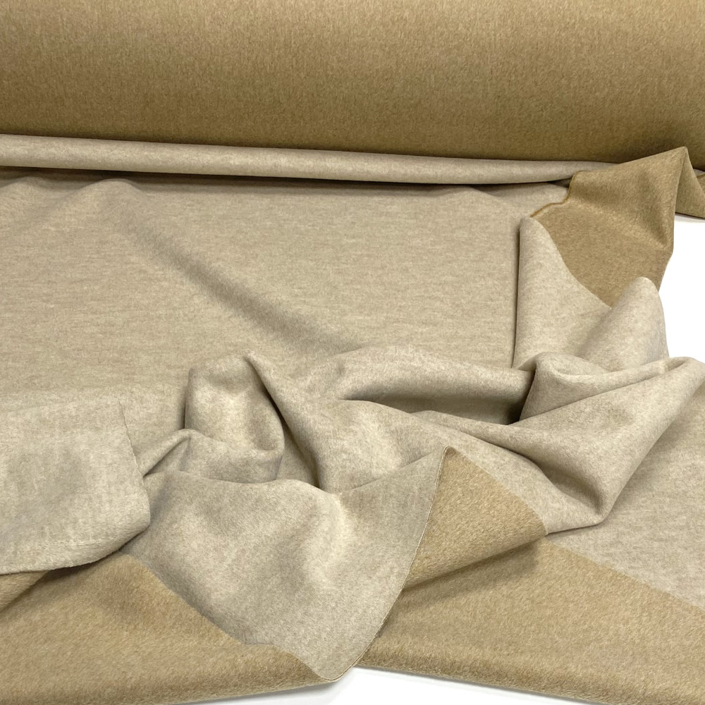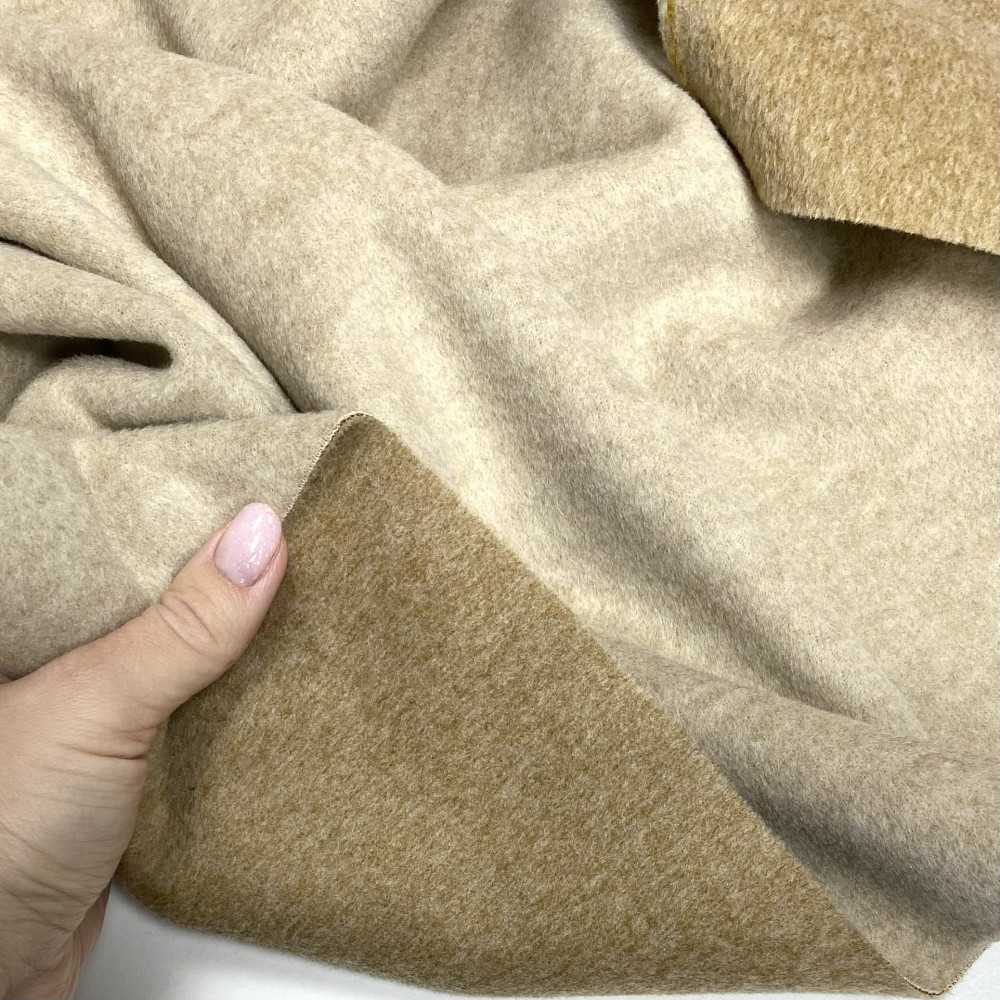 Неймовірна, красива двостороння тканина. Одна сторона - карамельна з меланжевим ефектом, друга - світлий кремовий.