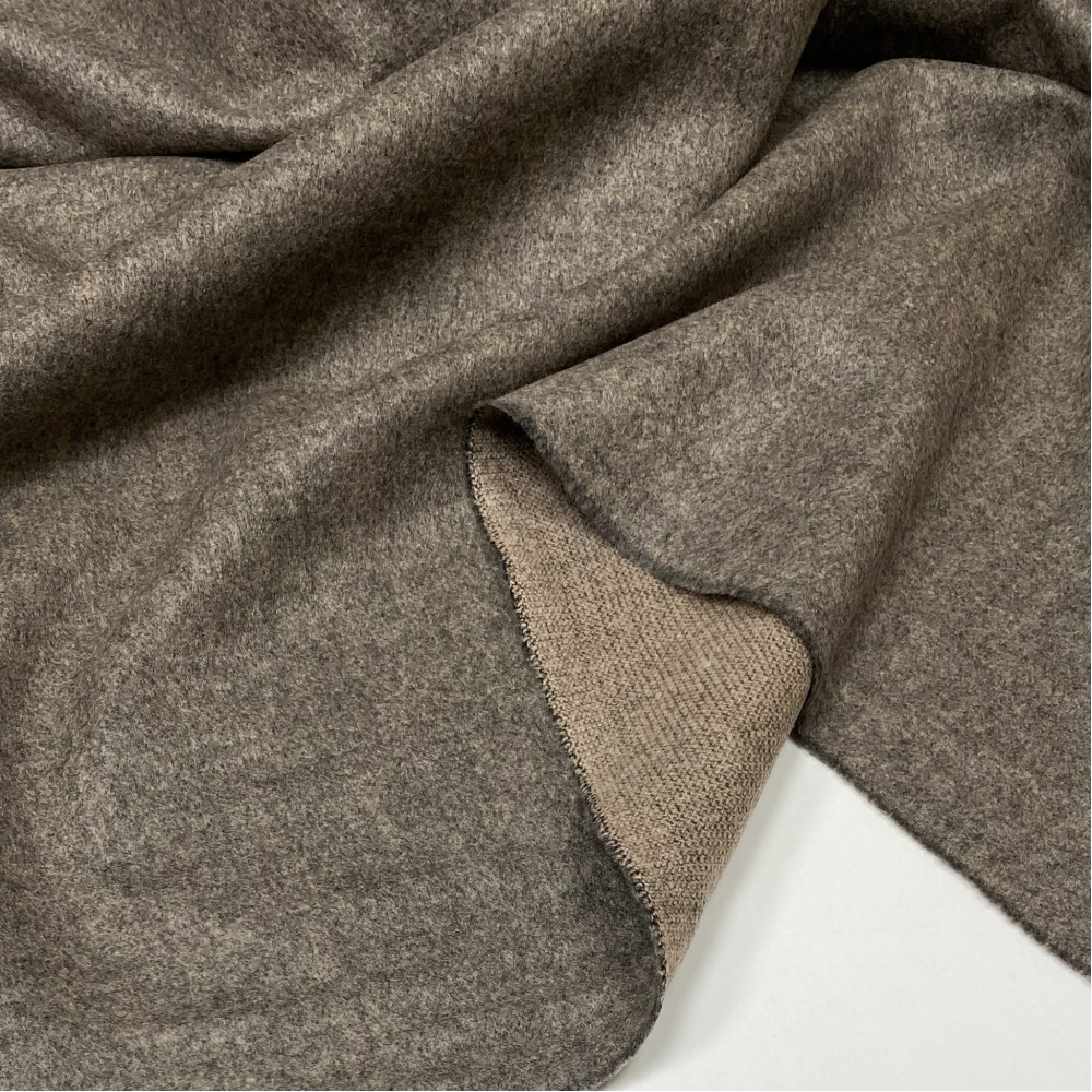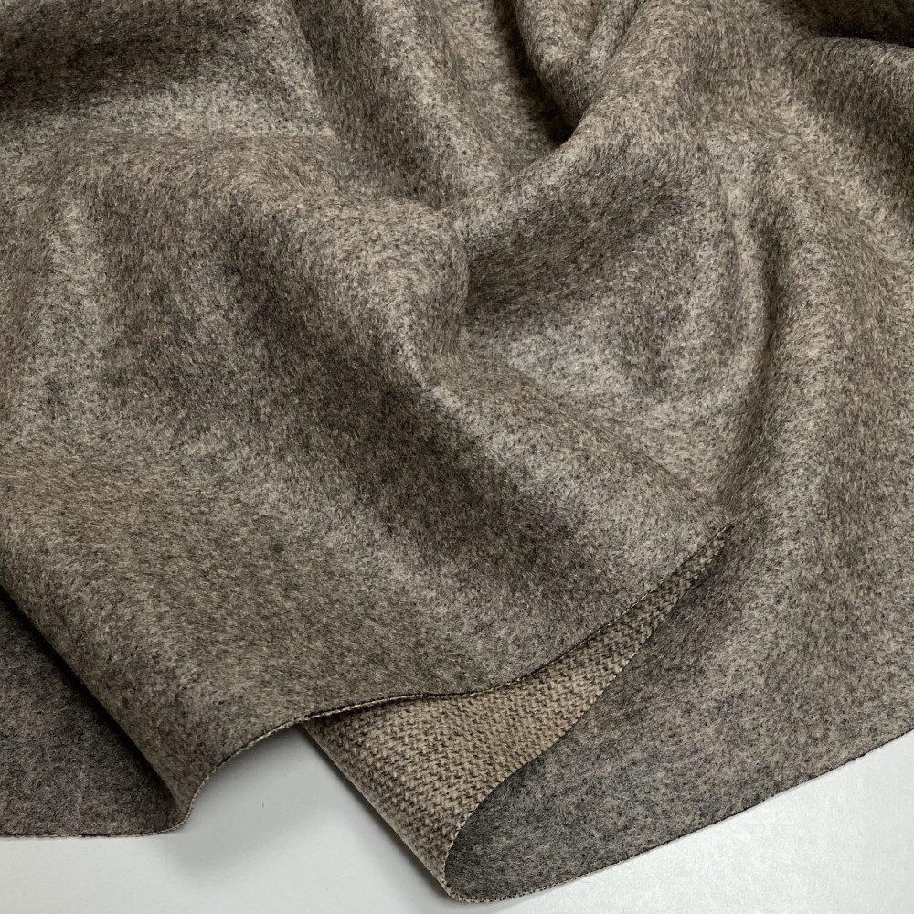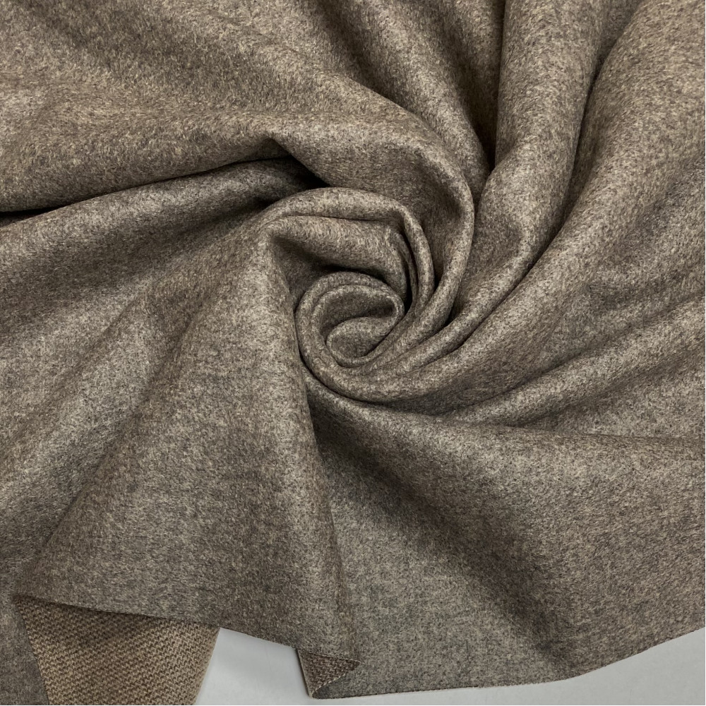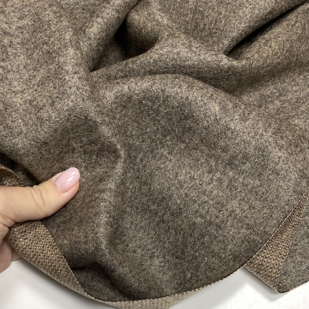 Ефектна, сучасна пальтова тканина красивого кольору кави з молоком з меланжевим ефектом.