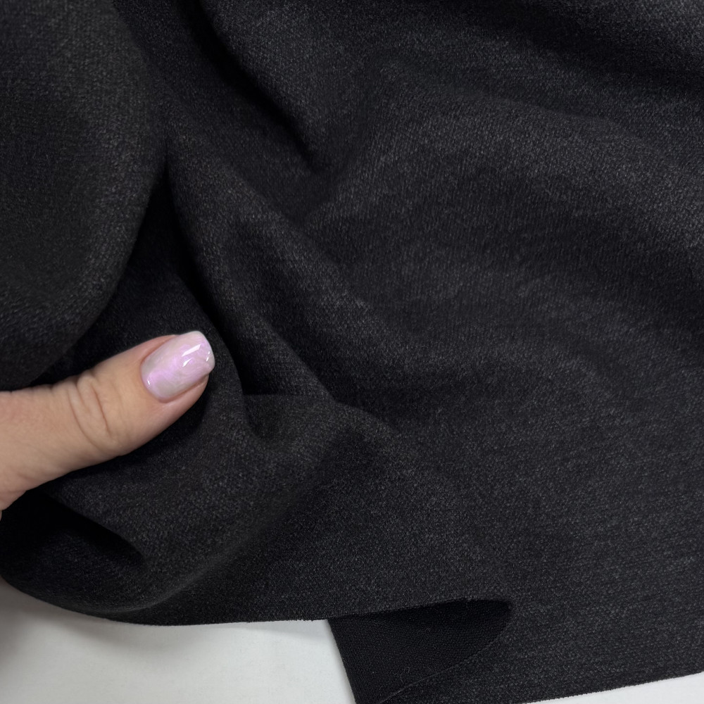 Дуже темний сірий колір тканини або, навіть, чорний з меланжем. Виворіт чисто чорний.