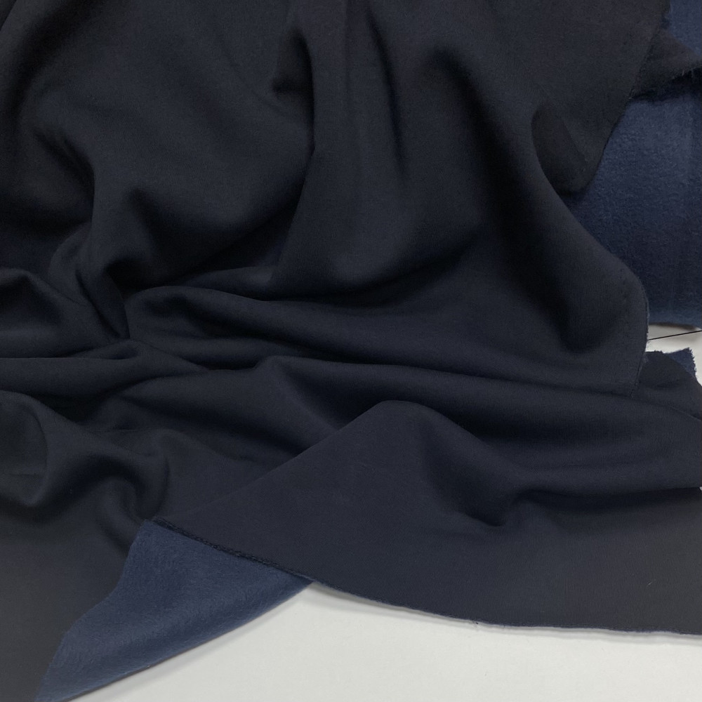 Дуже темно-синій, майже чорний колір з лицьової сторони та класичний синій колір начосу з вивороту.