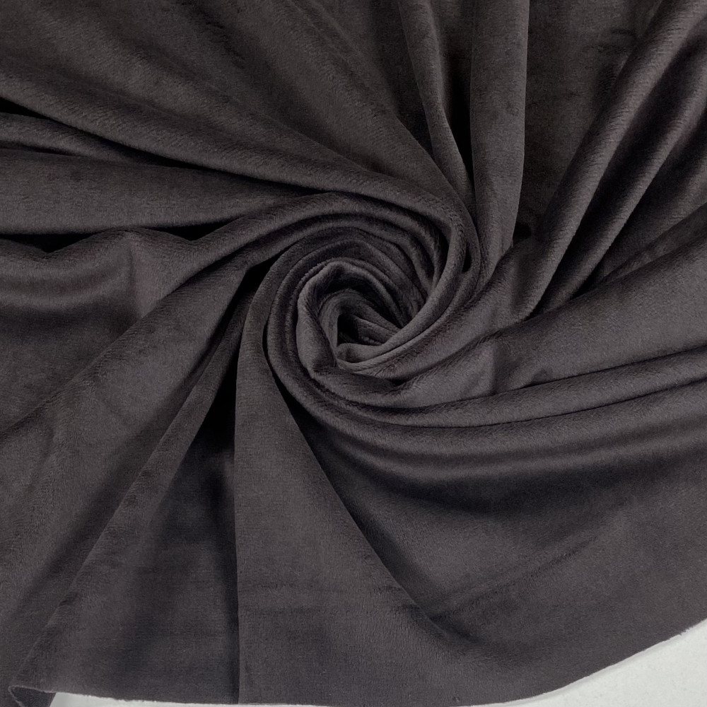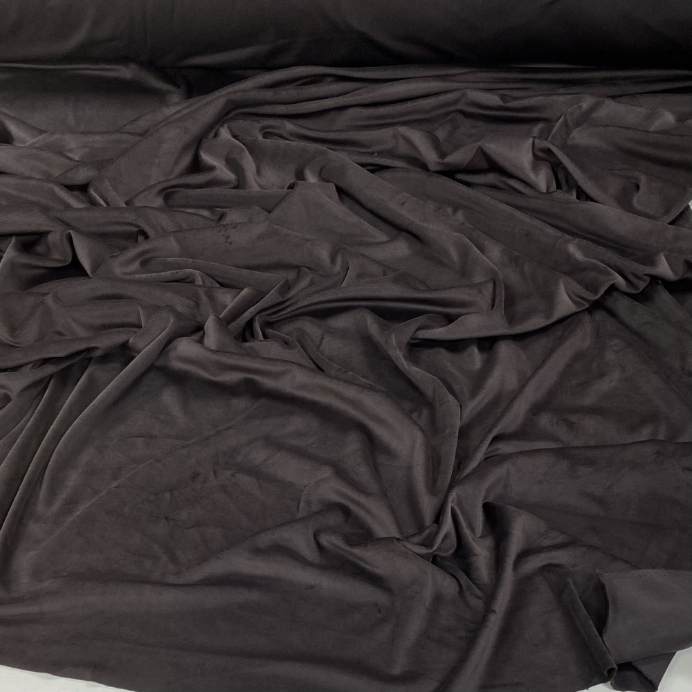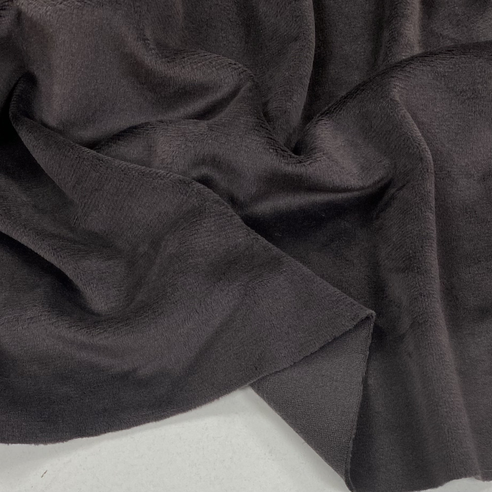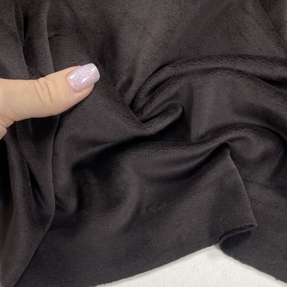 Трендовий, модний колір темного, чорного шоколаду. Тканина підійде для пошиву як домашнього одягу так і речей на прогулянку. Приємний, м‘якенький на дотик. Має стрейч в обидві сторони та хорошу щільність. Шиємо костюми, халати, піжами, світшоти, худі, брюки.